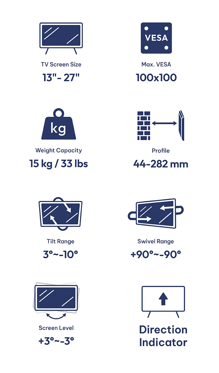 | Metal Sheet Thickness: | VESA Panel: 2mm Wall Plate: 2.5mm |