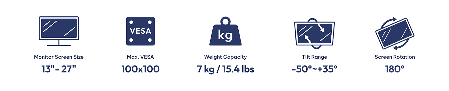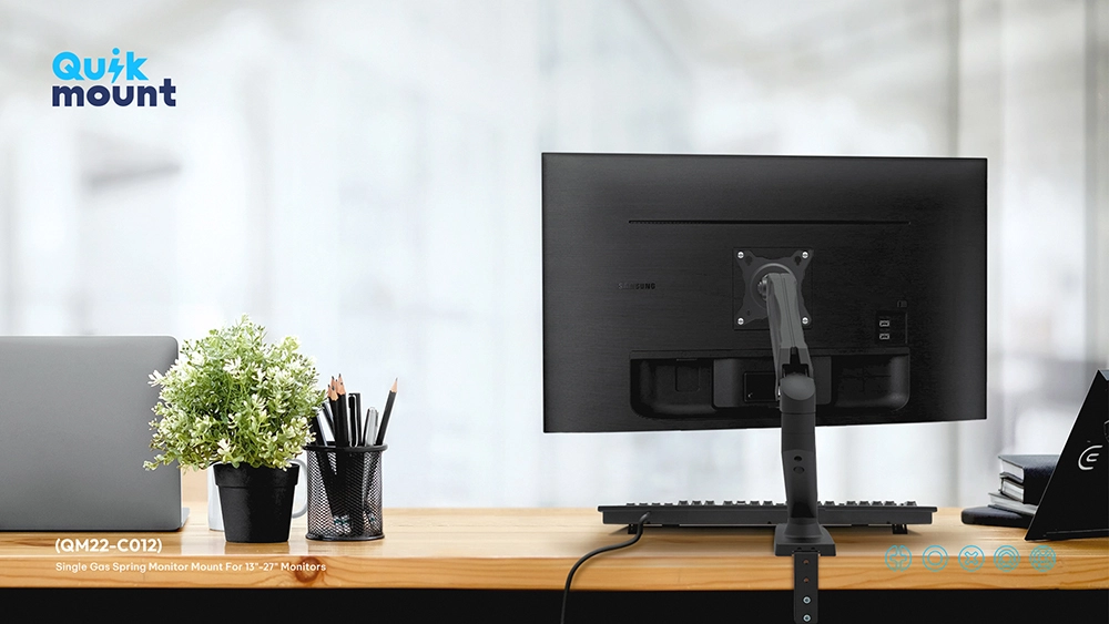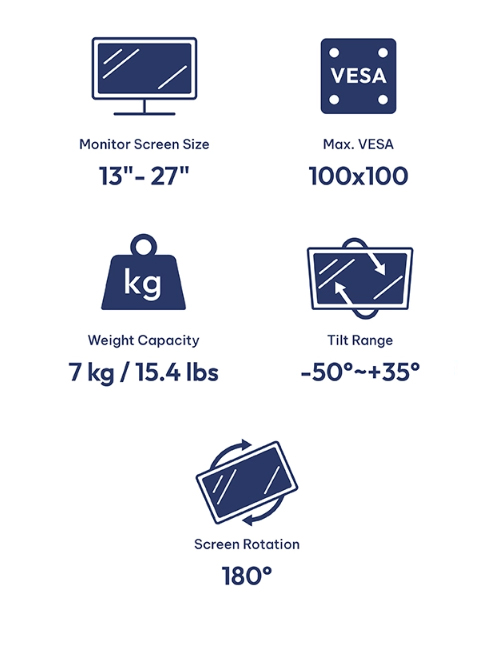 - Gas spring perfectly counterbalances the weight of your screen to help effortless adjustment for viewing comfort.